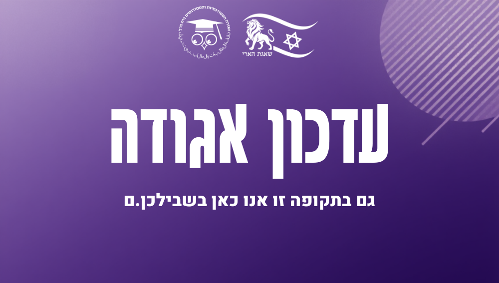 אגודת הסטודנטיות והסטודנטים פועלת בימים אלו באופן רציף מול הנהלת המכללה והגורמים הרלוונטיים על מנת לוודא כי יימצא מתווה לימודים שיאפשר המשך רצף אקדמי, תוך התחשבות במצב הביטחוני ובהשפעותיו על ציבור הסטודנטיות והסטודנטים.